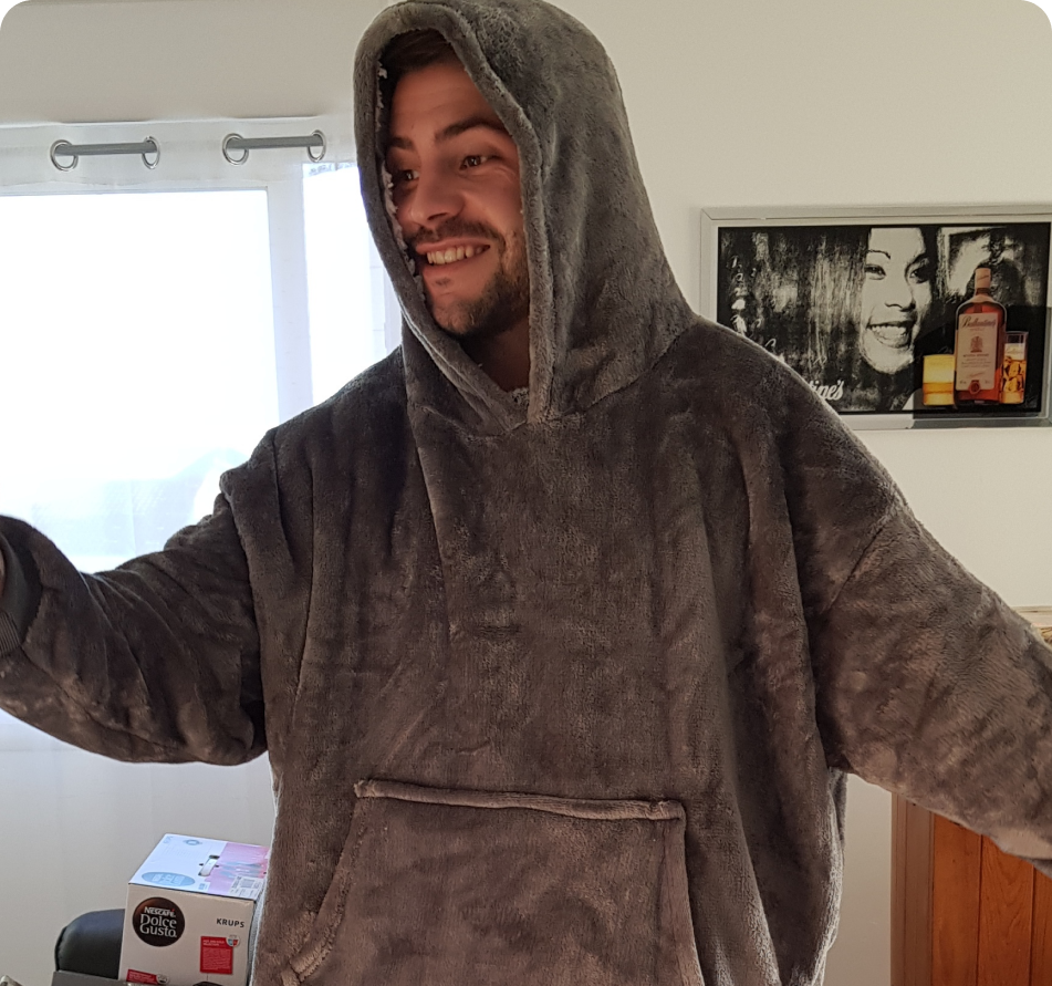 With extra-large sleeves, a giant warm hood, and a spacious front pocket, the possibilities are endless! You’ll want to stay on the couch forever!